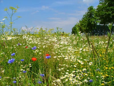 Bloemenrand hebben we ook op de Stellehoeve. Het is een toevluchtsoord voor verschillende dieren, zoals fazant, patrijs en verschillende nuttige insecten. Deze kunnen overleven tijdens de winter, wanneer het land zwart geploegd ligt. We krijgen er een kleine vergoeding voor. Indien je je eigen arbeid rekent is het verliesgevend. Om de bloemenrand schoon te houden van onkruiden zoals akkerdistel, kost het veel tijd. Het is puur voor de hobby dat we deze bloemenrand in stand houden. Indien we de vergoeding zouden krijgen die de natuurgebieden in Nederland per hektare kosten, zouden we er wellicht iets aan overhouden. |